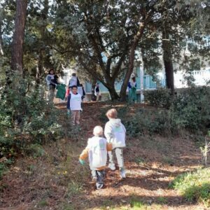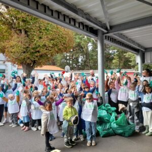 Equipés de gants, de chasubles et encadrés par des parents ou grands-parents volontaires, l’école a arpenté le quartier pour ramasser tout ce qui pollue la nature : mégots, plastique, emballages, canettes…Il y avait de quoi remplir nos sacs et chacun était fier. Nous avons continuer la sensibilisation en classe et lors des séances de classe dehors!